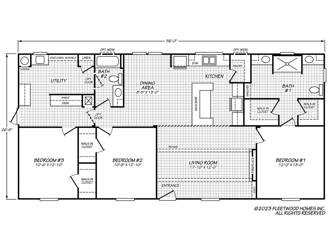 - Guest bath additional door to utility room
